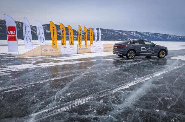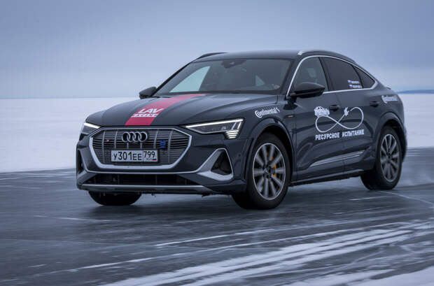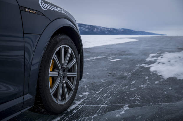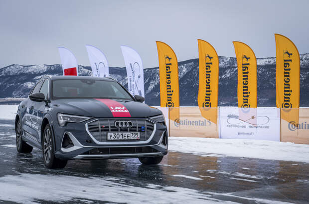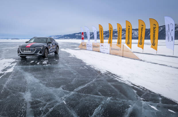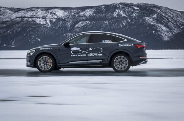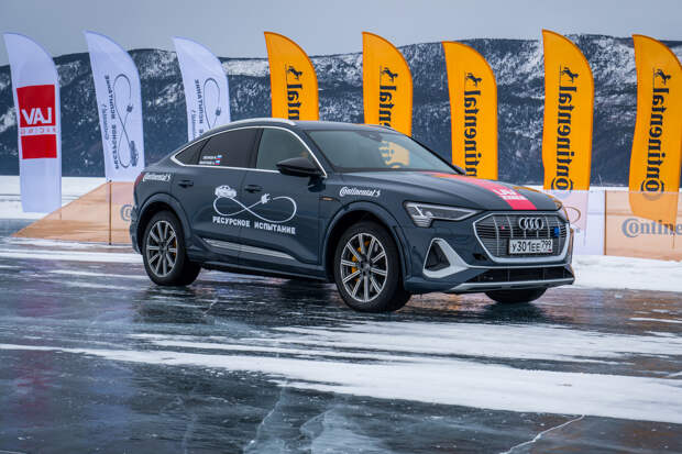Российский путешественник Андрей Леонтьев совместно с представителями компании Continental провели испытания электрического кроссовера Audi e-tron на озере Байкал. В ходе заезд они проверили, какое расстояние способна проехать батарейная модель на одном зарядке аккумулятора по льду на нешипованной резине.