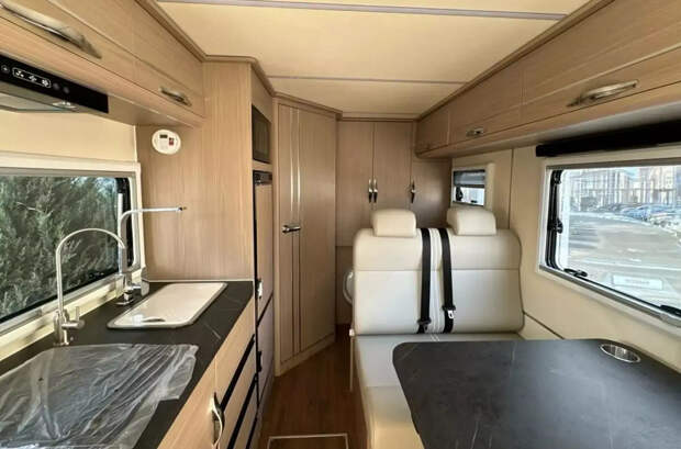 Также желателен санузел, включающий душевую кабину и стиральную машину. Кроме того, в список опций автодома обычно входят система климат-контроля и множество ящиков для хранения вещей.