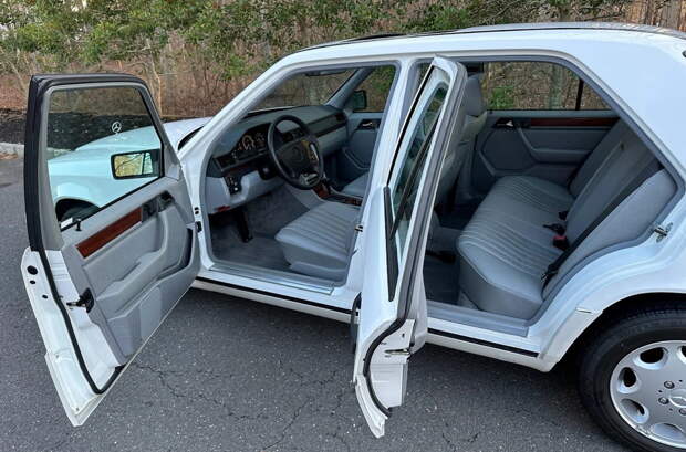 С 1995 года белый Mercedes-Benz преодолел всего 9763 мили (эквивалент 15,7 тысячи километров), и мизерному пробегу соответствует состояние кузова, днища и салона. Есть документы, подтверждающие безаварийную историю, и отчёты о дилерском обслуживании. О «гаражном» статусе седана напоминают шины Pirelli, выпущенные в прошлом веке.