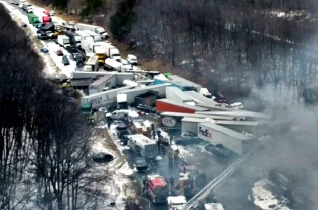 Более 50 автомобилей столкнулись из-за плохой видимости и гололеда на автомагистрали I-81 в американском штате Пенсильвания. По данным местной полиции, погибли пять человек. Больше 20 получили травмы различной степени тяжести, и были доставлены в ближайшие больницы. Тех, кому повезло больше, перевезли в штаб волонтерской пожарной службы Goodwill Fire Company в Минерсилле.