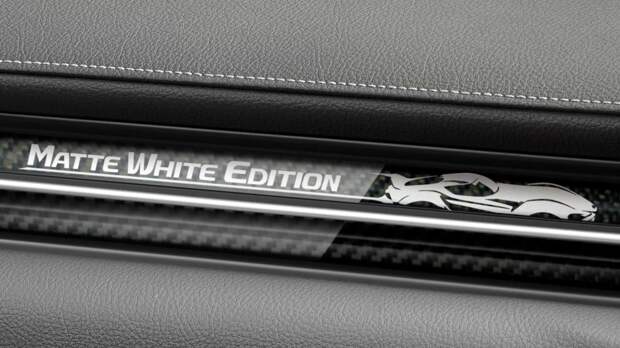 Особенностью автомобиля стал белоснежный оттенок кузова Matte Avalanche White Metallic, в тон которому в интерьере появились карбоновые логотипы спецверсии, а также отделанный светло-бежевой кожей — на креслах, центральном тоннеле и дверях — салон.