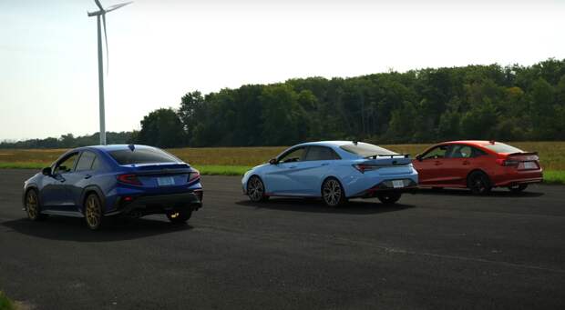 Авторы YouTube-канала Sam CarLegion провели очередную гонку по прямой с участием трёх автомобилей. На сей раз в дрэг-битве сразились три седана, представляющие разные марки — честь Hyundai отстаивала топовая версия модели Elantra, исполнение N, тогда как за Honda и Subaru бились варианты седанов попроще, Civic Si и WRX соответственно.