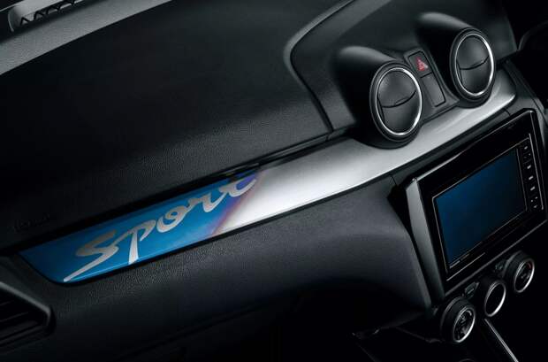 В салоне — алюминиевые декоративные вставки с градиентом и надписями Sport и ZC33S powered by Suzuki. В остальном «спортивный» хэтч повторяет обычный: у него ковшеобразные кресла с красной строчкой и алюминиевые педали.
