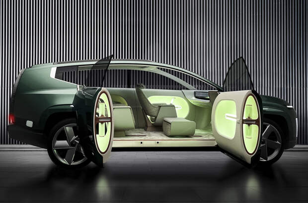 Hyundai уже показал флагманский Ioniq 7, но пока только на тизере и в виде концепта. В ноябре прошлого года корейцы привезли на автосалон в Лос-Анджелесе шоу-кар под названием Seven с распашными дверями и футуристичной «пиксельной» оптикой («Parametric Pixels») по мотивам первенца линейки — Ioniq 5.
