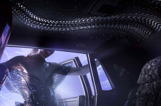 Откидные столики и панель напротив переднего пассажира украшает узор, как на капоте. Сделан он с помощью нескольких слоев краски и лака с разным содержанием частичек стекла. Рецептуру разработали за четыре месяца, ну а сам процесс ручного нанесения занимает больше трех недель.