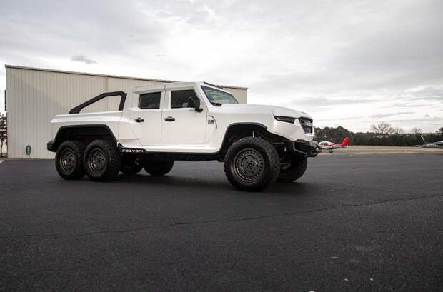 В движение шестиколесного монстра приводит компрессорный V8 6.2 отдачей 1014 лошадиных сил и 1341 Нм крутящего момента. Коробка — восьмидиапазонный автомат от Ram 1500 TRX, привод полный.