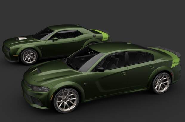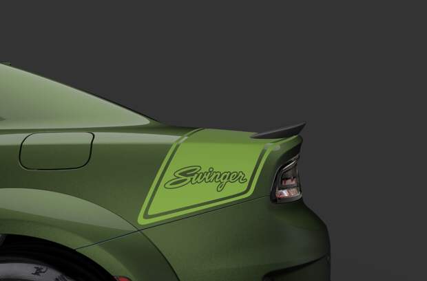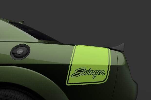 Вдобавок Challenger Scat Pack Swinger и Charger Scat Pack Swinger положены 20-дюймовые колеса Gold School, черные шестипоршневые тормозные суппорты Brembo, алюминиевые накладки с текстурой «под дерево» и обивка сидений из кожи «наппа» и алькантары. Есть выбор цвета кузова — темно-зеленый F8 Green, кислотный Sublime Green или белый White Knuckle. У купе к тому же покрашен в золотистый воздухозаборник-шейкер.