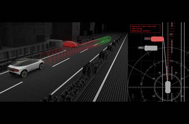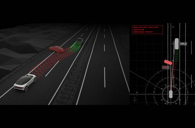 Сердце технологии ground truth perception — лидар Luminar, данные с которого дополняют показания семи радаров и десяти камер. Лидар видит на 300 метров вперед, плюс имеет широкие углы обзора: 25 градусов по вертикали и 120 — по горизонтали. Система определяет форму и дистанцию до объекта, визуализирует пространство вокруг автомобиля, но главное — в реальном времени анализирует дорожную ситуацию, оценивает риски и просчитывает оптимальную последовательность шагов, которые необходимо предпринять, чтобы избежать аварии.