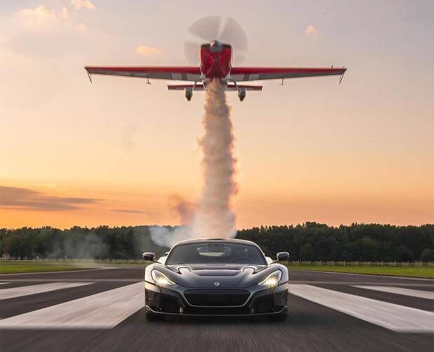 Фирма Rimac Automobili представила очередное испытание своего 1914-сильного электрического гиперкара Nevera, которому на сей раз пришлось поучаствовать в гонке по прямой. Правда, похоже, достойных соперников среди автомобилей для электромобиля не нашлось, поэтому в компании выбрали конкурента из мира авиации и свели гиперкар с пилотажным самолётом.