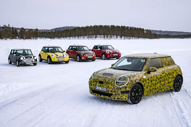 Компания Mini продолжает готовиться к дебюту пятого поколения компактного хэтчбека, который будет доступен как с топливным двигателем, так и с полностью электрической силовой установкой. На этот раз британская марка привезла трехдверную модель на зимние испытания в Швецию. Причем вместе с будущей новинкой представители бренда продемонстрировали четыре прошлые версии автомобиля, чтобы показать технологическое развитие компании.