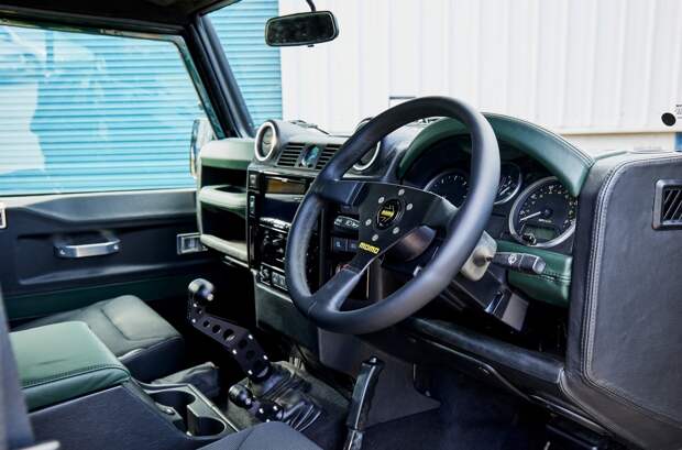 В салоне Defender появятся кресла Recaro, руль Momo, фирменные рычаги КПП и раздатки. К тому же Bowler обещает поработать над шумоизоляцией, перешить салон кожей в сочетании с алькантарой и установить «двухдиновое» головное устройство, поддерживающее спутниковую навигацию и цифровое радио. Цвет кузова и салона выберет заказчик. Также ему решать, использовать ли в качестве донора собственный автомобиль или же доверить поиск подходящей машины Bowler.