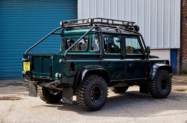 Конверсия обычного внедорожника в «экстремальный» Defender включает установку подвески Fast Road (оригинальные амортизаторы Bilstein, собственные пружины, лифт на 51 мм), 16-дюймовых колес с бэдлоками, шин внешним диаметром 35 дюймов, а также расширителей колесных арок от Bowler Bulldog и облегченных бамперов. К этому стоит добавить внешний каркас безопасности, усиленные тормоза Alcon с четырехпоршневыми суппортами, перепрошивку блока управления двигателем (177 л.