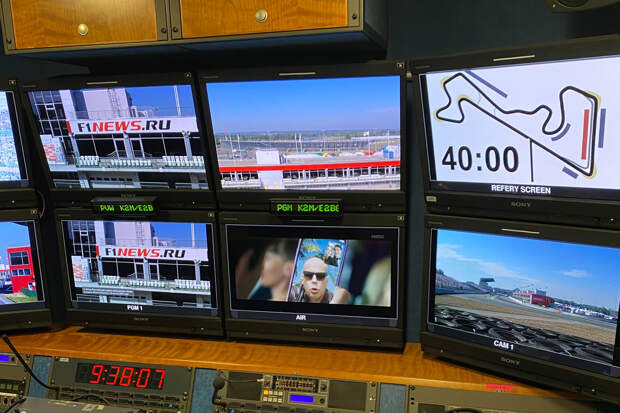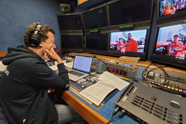 — Если обратил внимание, мы с тобой смотрели гонку всего по одной, общей для всех трансляции. На мониторы можно вывести картинку с нескольких камер, и я пробовал так вести гонку. Но потом от этой практики отказался, так как отвлекаешься и начинаешь комментировать не то, что зритель видит у себя на экране. Но даже в таком случае режиссёр трансляции может подсказать в наушник что-то, что увидел с другой камеры. И я говорю об этом, опережая переключение картинки в трансляции.