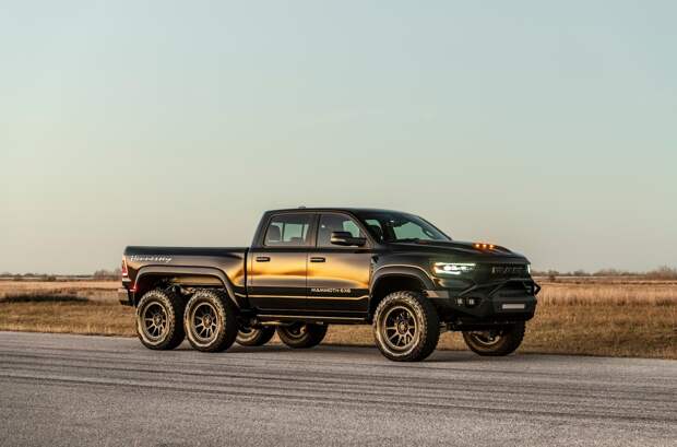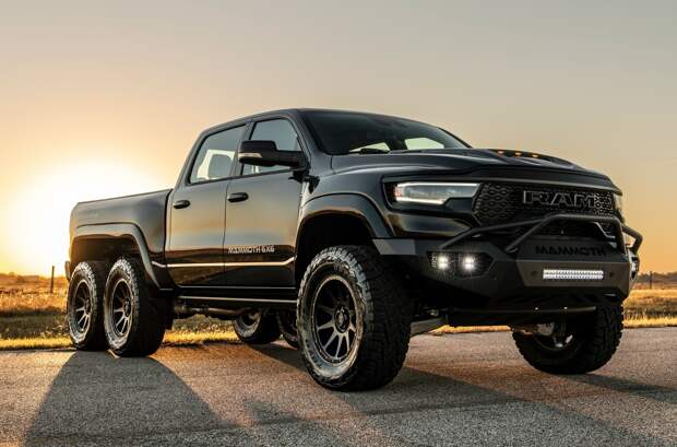 Техасское ателье Hennessey Performance поставило на поток выпуск анонсированных ещё в 2020 году трехосных внедорожников Mammoth 1000 6x6 TRX. Аббревиатура в названии — намек на машину-донора. Им стал «злой» пикап RAM 1500 TRX с компрессорной «восьмеркой» HEMI 6.2. В мастерской Hennessey отдачу двигателя довели до 1026 сил, плюс добавили ещё ряд интересных нововведений.