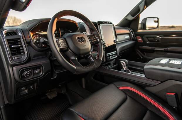 Изначально предполагалось, что на шестиколесных «Мамонтов» будут ставить крейтовые моторы Hellephant V8 7.0 из каталога Mopar, но планы по какой-то причине пришлось поменять. Под капотом готового вездехода — всё та же «восьмерка» HEMI 6.2 от обычного RAM 1500 TRX, но форсированная до 1026 сил и 1314 Нм крутящего момента (было 712 л.с., 881 Нм). Из нового здесь прошивка блока управления, система впуска, нагнетатель объемом 2,65 литра и топливные форсунки.