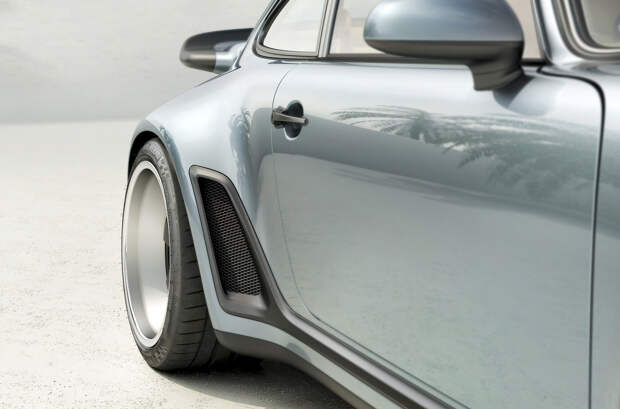 Стоп! Давайте дадим слово боссу Singer Робу Дикинсону. «Первые 930 Turbo без промежуточного охлаждения нагнетаемого воздуха отличались задним спойлером Whale Tail («китовый хвост») с загнутыми вниз краями и тонким профилем. В более поздних автомобилях использовался интеркулер, поэтому у аэродинамического элемента там другой профиль с своеобразным коробом. Иногда его называли «чайным подносом». Мы же хотели комбинацию «китового хвоста» и промежуточного охлаждения». Такая вот сборная солянка высшего дизайнерского и инженерного уровня!