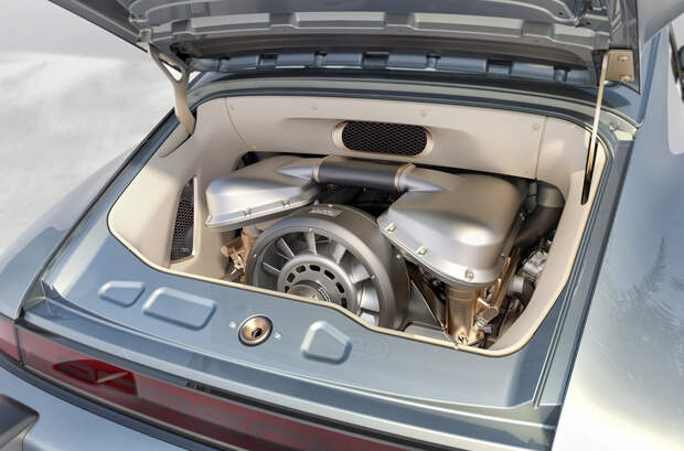 Подвеску дорабатывают с прицелом на комфорт, но по желанию клиента настройки могут скорректировать. Опционально устанавливается углерод-керамическая тормозная система. Ну а главный технический сюрприз — это 3,8-литровая оппозитная «шестерка» воздушного охлаждения с двумя турбокомпрессорами, интеркулерами и электронным управлением перепускных клапанов. Не правда ли, странно? Во-первых, на 930 ставили моторы объемом до 3,3 литра, а на 964 — максимум «три и шесть» Во-вторых, была лишь одна турбина. В-третьих…