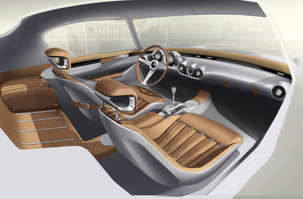 Салон, как и «скорлупа», изобилует индивидуальными решениями. Так, передняя панель другая — с отдельным козырьком над панелью приборов и отлогой частью перед пассажиром. У серийной машины, напомним, торпедо более массивное.