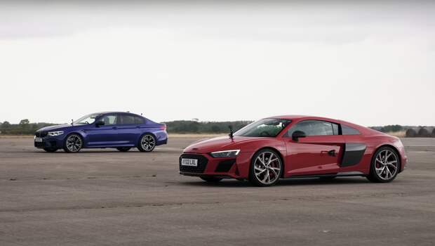 В итоге получилась весьма интересная и зрелищная битва не только концепций, но и моторов и типов привода.Авторы канала carwow устроили очередное традиционное для себя сравнение двух автомобилей в дрэг-рейсинге. На сей раз дуэлянты представляли Германию, но были из абсолютно разных классов — в качестве соперника среднемоторному купе Audi R8 был выбран переднемоторный седан BMW M5 Competition, который при определённом желании вполне можно назвать семейным автомобилем. В итоге получилась весьма интересная и зрелищная битва не только концепций, но и моторов и типов привода.