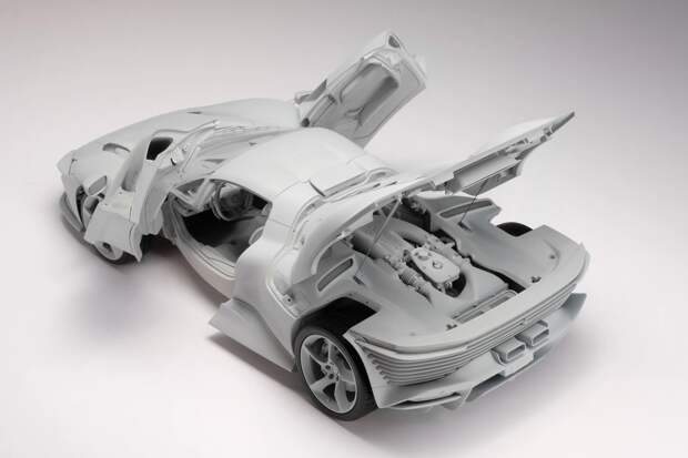 Использование в работе официальной технической документации Ferrari позволило создать точную копию автомобиля в масштабе 1:8 — у модели длиной 58 сантиметров не только в деталях выполнен экстерьер со съемной крышей, но и тщательно проработан интерьер и подкапотное пространство, в котором проработаны даже самые мелкие детали реальной машины.