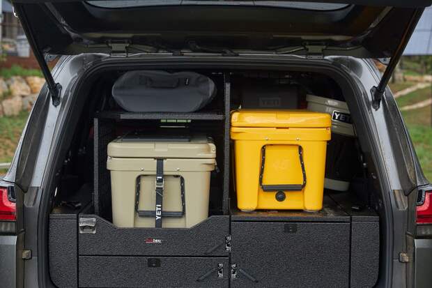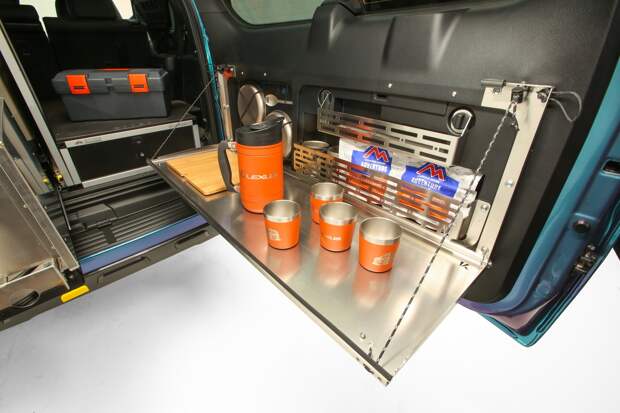 Кузов оснащён силовым обвесом CBI, багажником Alucase на крыше и тентом Yakima, дополняют которые светодиодные модули Rigid. В багажнике разместили воздушный компрессор и холодильник ARB, набор мебели от Kaon с комплектом бытовой техники Goose Gear. Внедорожную тему развивает LX 600 Alpine Lifestyle Concept — подготовленный совместно с Hiraku автомобиль представляет собой вариант для активного отдыха с максимальным комфортом. Модель оснастили силовым обвесом и лебедкой ComeUp, которые сочетаются с углепластиковыми расширителями колесных арок JAOS и коваными дисками Vossen с покрышками Bridgestone.