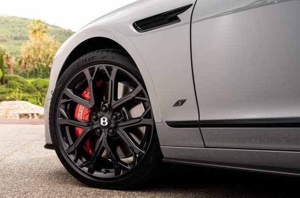 Общие черты экстерьера всех «эсок» Bentley — заводской антихром, затемнённые фонари, ярко-красные тормозные суппорты, значки S на передних крыльях и специальные колёсные диски. Седан Flying Spur S — не исключение. Технические особенности новинки — спортивный выхлоп (или его имитация у гибрида) и подвеска Bentley Dynamic Ride с активными стабилизаторами.