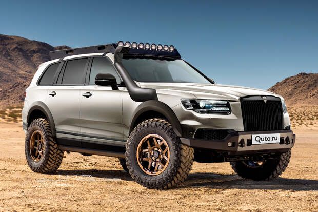 Дизайнер Никита Чуйко специально для портала Quto.ru создал рендеры экстремальной сафари-версии Aurus Komendant. Это улучшенный и прокачанный внедорожник, который изображен с пластиковыми расширителями колесных арок, шноркелем, багажником и блоком дополнительного освещения на крыше. Дорожный просвет у него больше, чем у стандартной версии, а брутальности и проходимости добавляют колеса с дисками медного цвета и «зубастой» резиной.