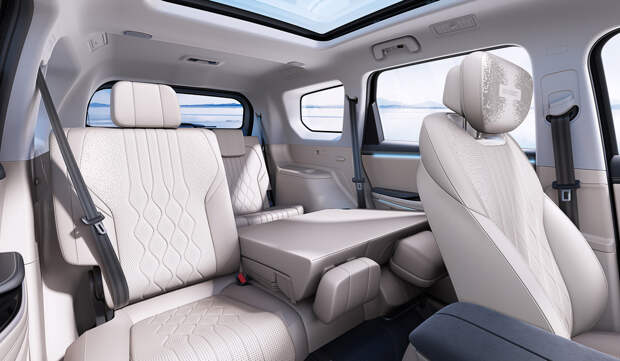 Появились более комфортные сиденья. Спереди — не только с обогревом и вентиляцией, но и со встроенным вибромассажем. На втором ряду теперь есть вентиляция, а сиденья третьего ряда имеют электропривод складывания спинок. Еще одна новая опция — активная система шумоподавления. Наконец, анонсирована шестиместная версия с двумя раздельными сиденьями на втором ряду.