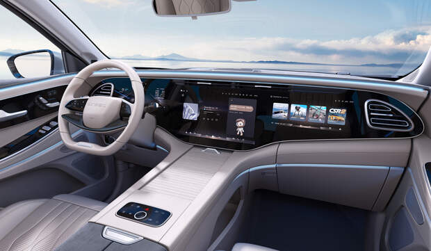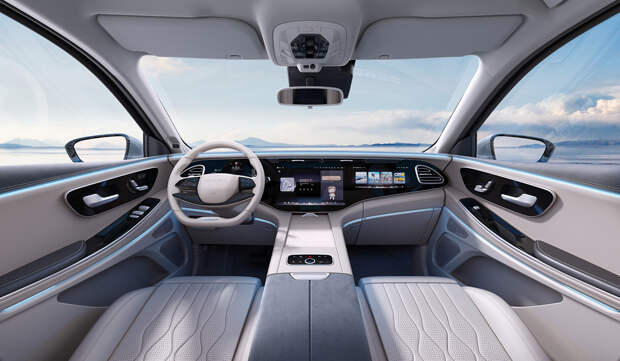 Главное нововведение — передняя панель, архитектура и дизайн которой явно подсмотрены у электрических Мерседесов EQS с опцией Hyperscreen. Она представляет собой единую стеклянную панель во всю ширину салона, в которую интегрированы три экрана и дефлекторы вентиляции. Новый руль — с сенсорными кнопками, за управление трансмиссией теперь отвечает правый подрулевой рычажок, а пульты управления электроприводом сидений расположены на дверях.