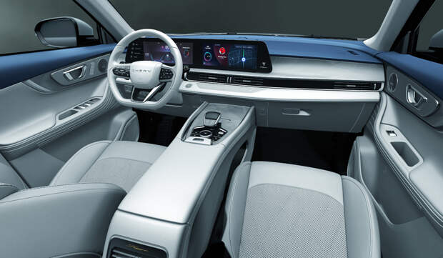 Интерьер тоже обновлен. Передняя панель с объединенными экранами (по 12,3 дюйма каждый) есть у Tiggo 8 Plus и сейчас, но у новой Pro-модели передняя панель сделана в одном стиле со свежим паркетником Chery Omoda 5, а вдобавок появился проекционный экран. Многие кнопки стали сенсорными, центральный тоннель стал выше и массивнее, консоль фактически упразднена: от нее осталась только полоска сенсорных кнопок под дефлекторами вентиляции. Tiggo 8 Pro будет иметь самую дорогую отделку и аудиосистему Sony. Интересно, что на новом руле вместо эмблемы красуется название марки.