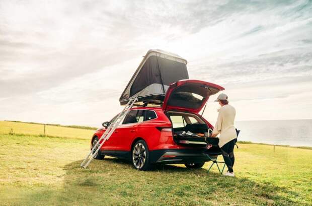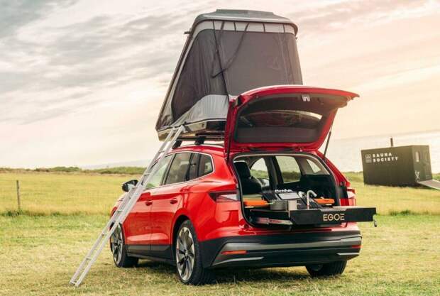 Оправиться в путешествие на таком Enyaq можно вчетвером.Британское подразделение Skoda показало новый кемпер на базе электрического кроссовера Enyaq iV, который доработала чешская фирма-производитель товаров для туризма Egoe. Практичный вариант автомобиля получил название FestEVal. Чехи снабдили его палаткой на крыше, которая убирается в компактный бокс, раскладной кроватью и выдвижной столешницей для обедов на свежем воздухе. Оправиться в путешествие на таком Enyaq можно вчетвером.
