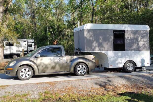 Команда Smyth Performance из Род-Айленда, специализирующаяся на переделке автомобилей в пикапы, сделала из Volkswagen Beetle 2006 года выпуска симпатичный «ют». Однако владелец автомобиля Пол Маккормик решил на этом не останавливаться: он превратил «Жук» в кемпер, самостоятельно смастерив для него двухколесный прицеп.