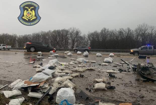 От столкновения с ограждением из кузова автомобиля выпало около 226 килограммов марихуаны.На трассе в американском штате Миссури произошла авария, участниками которой стали грузовая фура и пикап GMC Sierra 2007 года выпуска. Дальнобойщик пытался объехать аварию, но в момент маневра в заднюю часть фуры врезался пикап, водитель которого потерял управления. В результате удара грузовик съехал с трассы, а пикап занесло на скорости в отбойник. От столкновения с ограждением из кузова автомобиля выпало около 226 килограммов марихуаны.