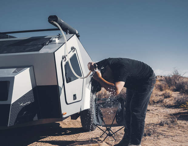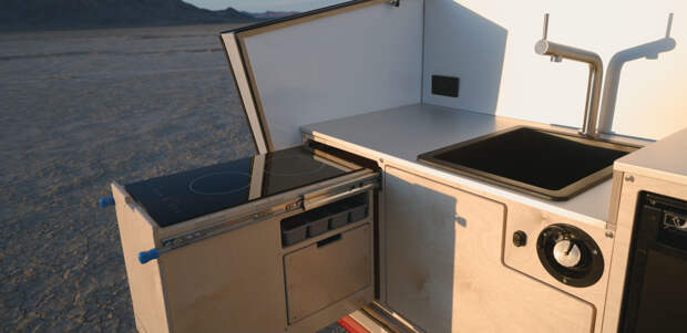 40-сантиметровый дорожный просвет в сочетании с независимой подвеской без оси Timbren позволяет безболезненно эксплуатировать кемпер даже на пересечённой местности. При скромных габаритах и массе чуть от 372 до 499 килограммов в зависимости от версии, Polydrop уже в базовой версии P17 Essential (от 16 990 долларов) поставляется со всеми основными удобствами, включая мини-кухню на открытом воздухе с плитой с двумя конфорками, холодильник и встроенную энергосистему для подключения электроники.