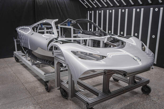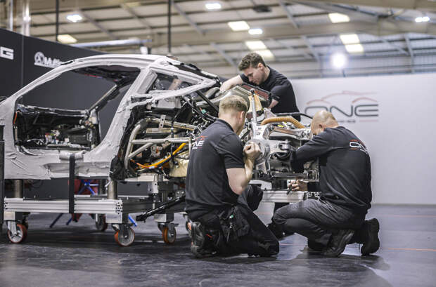 Сначала изготавливают монокок из углеволокна, на который устанавливают кузовные панели и крышу.Затем устанавливают все агрегаты, и проверяют их на специальном стенде в различных режимах. При этом сама процедура ничем не отличается от проверки силовой установки болида Формулы-1. Затем на заводе устанавливают двери и крылья, а также собирают интерьер. На финальном этапе Project One оборудуют колесными дисками и оптикой.