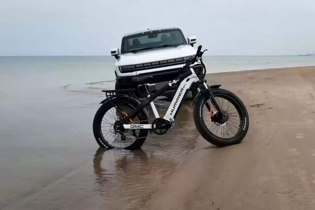 Марка GMC представила дополнение к электрическому пикапу Hummer EV. Это велосипед под названием Ebike с толстыми шинами, парой электродвигателей Bafang, четырехпоршневыми гидравлическими дисковыми тормозами и съемным аккумулятором. Фэтбайк, построенный в партнерстве с производителем велосипедов Recon Power Bikes, вскоре поступит в дилерские центры GMC и будет доступен для онлайн-заказа по цене 3999 долларов (около 250 тысяч рублей) — почти в 28 раз дешевле Hummer EV. Каждый из двигателей Ebike от GMC развивает постоянную мощность 750 ватт и пиковую 1200 ватт, что дает максимальную отдачу в 2,4 киловатта. Это позволяет велосипеду развивать скорость до 45 километров в час.