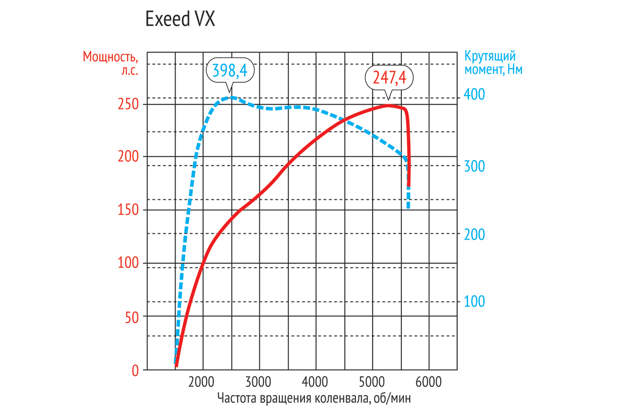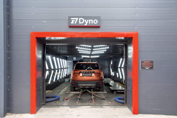 Первым на стенд Dynomax заезжает Exeed VX. На родине его двухлитровый турбомотор развивает 261 л.с., а вот российские покупатели получают гораздо более привлекательные 249 сил. Например, в Москве это сразу минус двадцать тысяч рублей к транспортному налогу.