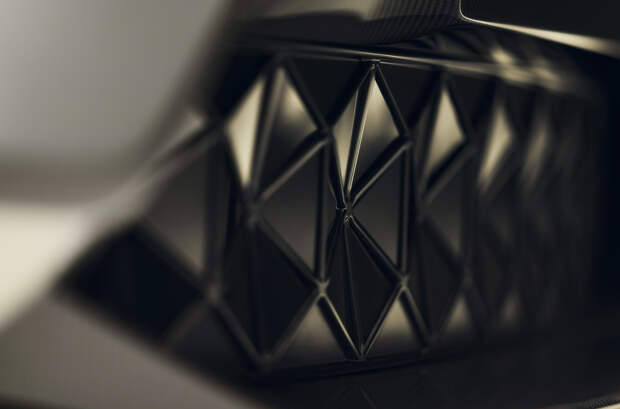 Для Eletre создали так называемый «пористый» корпус, который буквально пропускает воздух во время движения благодаря отверстиям в капоте, за обеими парами колес и в верхней части задних стоек. Также имеется «плавающий» спойлер на двери багажника, меняющий угол в зависимости от режима езды (их здесь четыре – Range, Tour, Sport, Off-Road и Individual) и 23-дюймовые колеса с карбоновыми вставками. Вишенка на торте – активная передняя решетка, покрытая сетью взаимосвязанных треугольных «лепестков», которые раскрываются, когда требуется охлаждение.