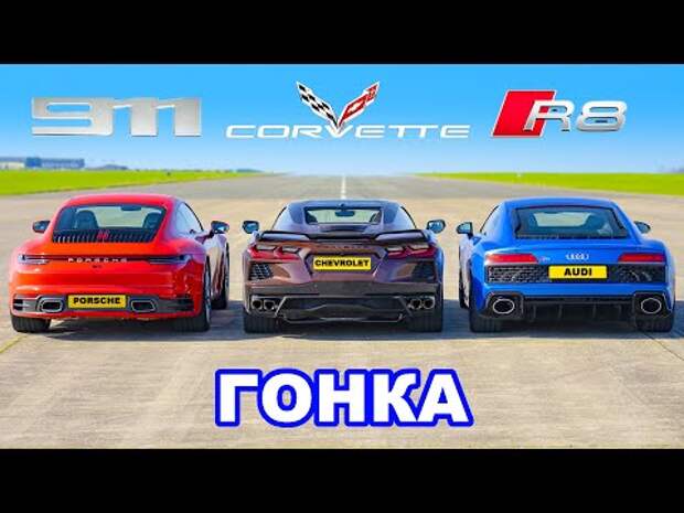 #carwow #audi #chevrolet #porsche Понравилось видео? Подписывайтесь на @carwow Русская версия и включайте уведомления, чтобы не пропускать новые выпуски! Самое время очередного КРУТОГО драг-заезда заднеприводных авто! Мэт за рулём Corvette C8 Stingray, и он будет состязаться с Porsche 911 Carrera и Audi R8 RWD! Характеристики всех трёх авто заметно различаются, но, уверяем, на деле всё окажется ближе, чем кажется! Начнём с Corvette: он оснащён 6,2-литровым атмосферным V8 мощностью 482 л.с. и 613 Нм момента. Снаряжённая масса авто 1655 кг. Что до Porsche, его 3-литровая оппозитная шестёрка выдаёт "всего-то" 385 л.с. и 450 Нм момента. Однако, это самое лёгкое авто из трёх, его снаряжённая масса всего 1509 кг! И наконец, Audi: он оснащён роскошным 5,2-литровым атмосферным V10, который выдаёт 570 л.с. и 550 Нм момента. Его снаряжённая масса 1609 кг. Так как вы думаете - станет ли этот заезд лёгкой победой Audi? Или всех обгонит более лёгкий 911? Есть лишь один способ выяснить - ПОГНАЛИ! Спасибо Classic Corvette Club UK: https://bit.ly/ClassicCorvetteClubUK-2805 Ещё один крутой заезд: Carwow Shorts - https://www.youtube.com/channel/UChqjw1OxDLUVvoP3r7BXteg TikTok - https://vm.tiktok.com/Vr2AS9/ Instagram - http://www.instagram.com/carwow Instagram Мэта - http://www.instagram.com/matwatsoncars Facebook - http://www.facebook.com/carwowuk/ Twitter - http://www.twitter.com/carwowuk e-mail - reviewmycar@carwow.co.uk Канал Мэта - https://www.youtube.com/channel/UCulu1KUYJ_2OBDouc_d-cUA Оригинальное видео от 28.05.2022 Ссылка: Мерч: https://teespring.com/en-GB/stores/carwow-index