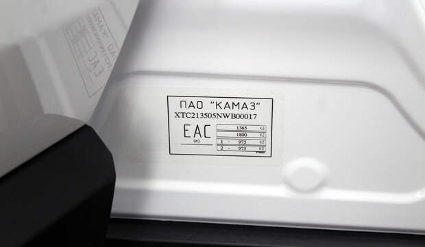 Она состоит лишь из шестнадцати постов, причем автомобили перемещаются между ними вручную на тележках. Хотя для подвоза компонентов приспособили электрические тягачи-беспилотники, которые компания Renault начала внедрять на московском заводе еще в 2015 году. На сборочной линии устанавливают силовой агрегат в сборе, переднюю и заднюю подвески, выпускную систему, бензобак, прикручивают колеса, приклеивают шильдики, заливают рабочие жидкости. И приклеивают табличку с российским VIN-кодом, который содержит идентификатор КАМАЗа (первые символы ХТС) и отраслевой индекс модели (2135). В конце — «световой тоннель» для проверки качества.