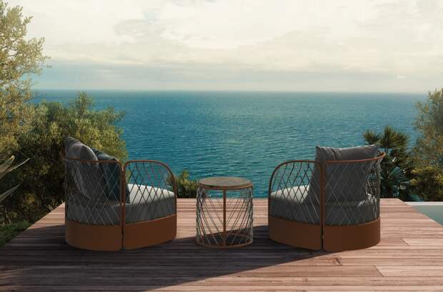 Собственная интерьерная линейка появилась у Bentley в 2013 году. В 2021-м в коллекцию Home вошли обеденный стол, софа, кресло-диван и рабочий стол с деревянным каркасом длиной около трёх метров, для которых предложили декор с эффектом Degradé. Одновременно Bentley представила тканевую обивку MARM \ MORE из мраморной пудры. А теперь этот эксклюзивный материал использован в первой для Bentley коллекции уличной мебели.