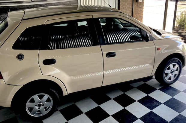 Модель получила бежевый пятидверный кузов типа хэтчбек, маленькую решетку радиатора и черный пластик на порогах, а также лючок бензобака без крышки в цвет кузова.
