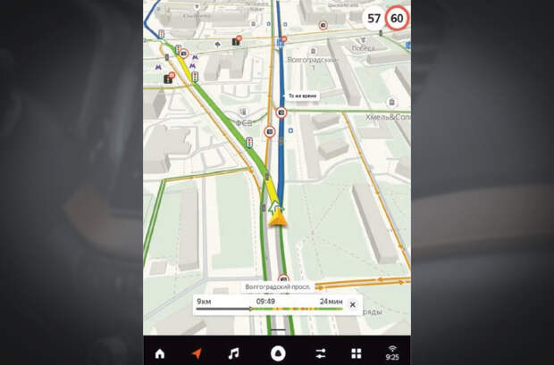 Внизу экрана расположена навигационная панель с горячими кнопками перехода на разные экраны, кнопкой активации Алисы и переход к настройкам. В нижнем правом углу отображается время и состояние подключения к интернету. Также стоит упомянуть всплывающие уведомления (например, о превышении скорости) – они появляются в правом нижнем углу поверх других элементов интерфейса.