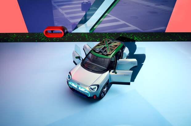 В MINI стиль Aceman именуют «новой эрой дизайна», так как в таком ключе будут оформлены все автомобили нового поколения. Передняя оптика обзавелась углами, но все еще узнаваема; угловатыми стали и колесные арки. Сохранились черные оконные стойки и «парящая» почти плоская крыша, а вот от решетки радиатора за ненадобностью избавились — осталась только фантомная подсветка, имитирующая ее контур.