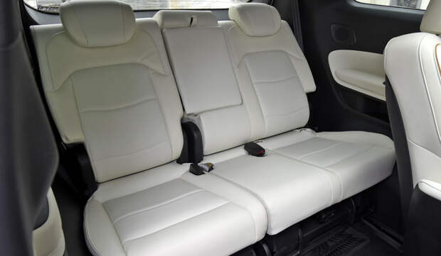Передняя часть салона сделана в том же духе, что у кроссовера GAC Trumpchi GS8 второго поколения. На передней панели не осталось аналоговых кнопок и переключателей: управление «музыкой» и климат-контролем полностью интегрировано в медиасистему с экраном на 14,6 дюйма и операционкой Adigo 4.0. Приборы нарисованы на дисплее диагональю 12,3 дюйма, центральный тоннель — с полкой на нижнем уровне.