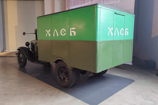 Хотя экспозиция считается тематической (каждый экспонат так или иначе связан с перевозкой хлеба), реальная хлебовозка тут лишь одна. Милый на вид фургон на шасси ГАЗ-АА построили в 1938 году на столичном кузовном заводе Мосхлеб. В кузове — три отсека для стандартных хлебных лотков.