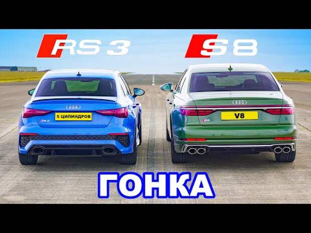 #carwow #audi Понравилось видео? Подписывайтесь на @carwow Русская версия и включайте уведомления, чтобы не пропускать новые выпуски! А что если выставить самый компактный мощный седан Audi против самого большого? Что ж, самое время выяснить! Мэт за рулём нового Audi RS3 и он собирается погоняться с Audi S8! Насколько они разные по характеристикам? Начнём с RS3: под капотом у него 2,5-литровый турбированный 5-цилиндровый мотор, мощность 400 л.с. и 500 Нм момента. Это авто относительно лёгкое (для спортивного седана), его снаряжённая масса 1575 кг; стоит такое авто в районе 56 тысяч фунтов. А вот S8 куда тяжелее, его снаряжённая масса 2220 кг! А ещё он куда дороже, стоит 103 тысячи фунтов, но это неспроста - у авто не только роскошный салон, но и производительность на уровне! Под капотом у S8 4-литровый V8 с двойным турбонаддувом, мощность 571 л.с. и 800 Нм момента. Получается, у S8 явно больше мощность, но не окажется ли разница в массе на руку RS3? Есть лишь один способ выяснить - ПОГНАЛИ! Ещё один крутой заезд: Carwow Shorts - https://www.youtube.com/channel/UChqjw1OxDLUVvoP3r7BXteg TikTok - https://vm.tiktok.com/Vr2AS9/ Instagram - http://www.instagram.com/carwow Instagram Мэта - http://www.instagram.com/matwatsoncars Facebook - http://www.facebook.com/carwowuk/ Twitter - http://www.twitter.com/carwowuk e-mail - reviewmycar@carwow.co.uk Канал Мэта - https://www.youtube.com/channel/UCulu1KUYJ_2OBDouc_d-cUA Оригинальное видео от 16.08.2022 Ссылка: Мерч: https://teespring.com/en-GB/stores/carwow-index
