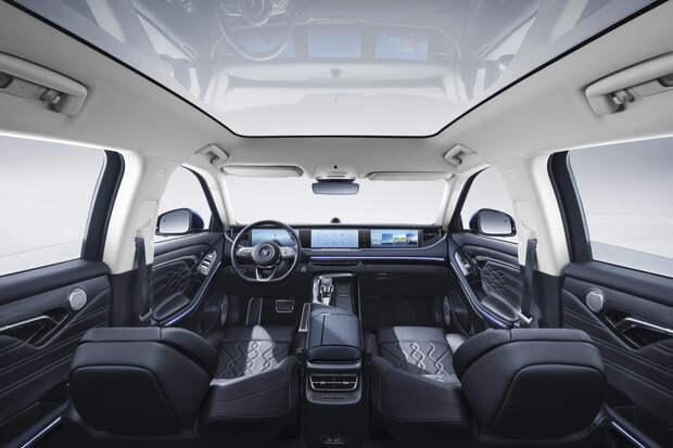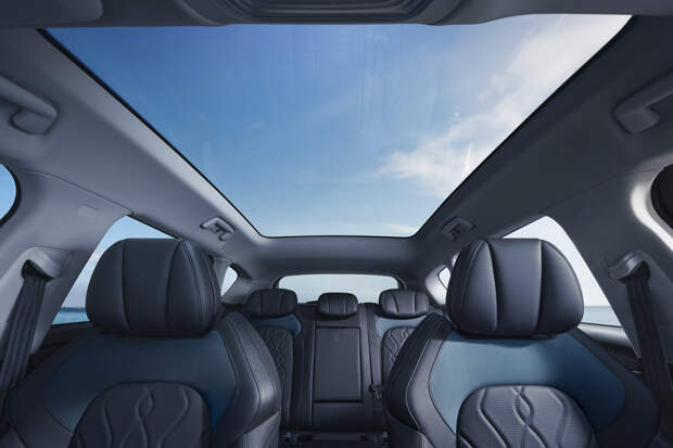 Кроссоверу положены 20-дюймовые колесные диски с разными вариантами дизайна, панорамная крыша большой площади и светодиодная оптика. В салоне установлена подъемная панель, открывающая при запуске три экрана диагональю 12,3 дюйма. Обещаны аудиосистема с 10 динамиками, отделка кожей, климат-контроль с фильтром, вентиляция передних сидений и подсветка интерьера.
