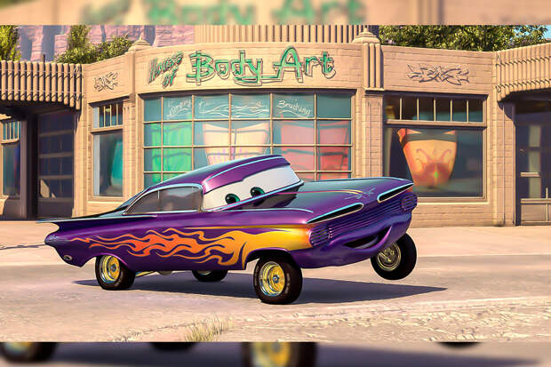 Жители Радиатор Спрингс — это совсем легко. Городишко населяют культовые американские тачки прошлых лет: от Ford T (Лиззи) и Willys MB (Сержант) до Mercury Police Cruiser 1949 года (Шериф) и Chevrolet Malibu 1959 года (Рамон).