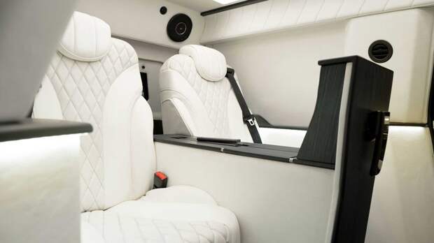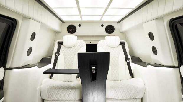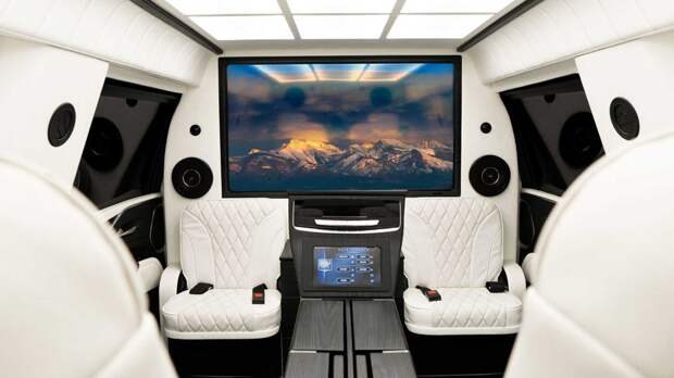 Внедорожнику на 13 сантиметров подняли крышу для большего простора внутри, а интерьер — кроме передних сидений и панели приборов — переделан полностью. За спинками кресел водителя и пассажира появилась перегородка со встроенным телевизором и откидные сиденья-страпонтены.В задней части кузова появились два капитанских кресла с электрорегулировками по множеству направлений, встроенными обогревом, вентиляцией и массажёром. Предусмотрены раскладные столики, оснащенные электроприводом, а также мультимедийная система с 19 динамиками. Стоимость превращения Cadillac Escalade в бронеофис на колёсах не названа.